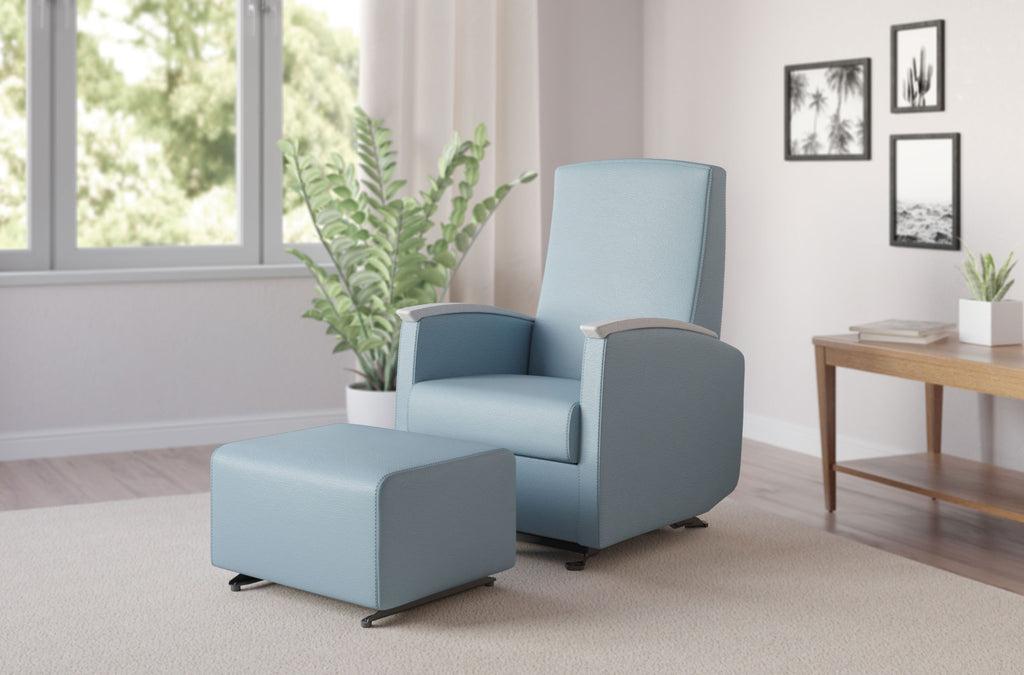 The Glider selection within the 350 Series brings users a calm gliding motion that makes it among our most comfortable seating options. The glide mechanism is activated by the user's body weight, so it remains stationary until the user takes a seat, then securely locks into place upon egress. The optional Gliding Ottoman provides synchronized motion to the legs for an enhanced experience.