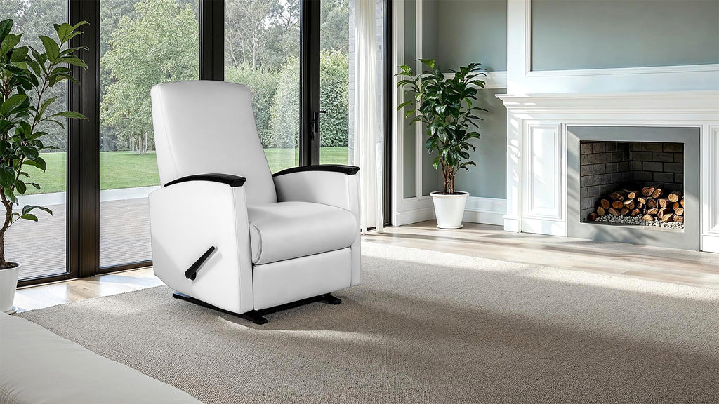 The Room Saver® Recliner was designed specifically to function fully within environments where space is limited. The proprietary recline mechanism eases the body of the chair forward when engaged to allow the user to fully recline when the recliner is only six inches from a wall.