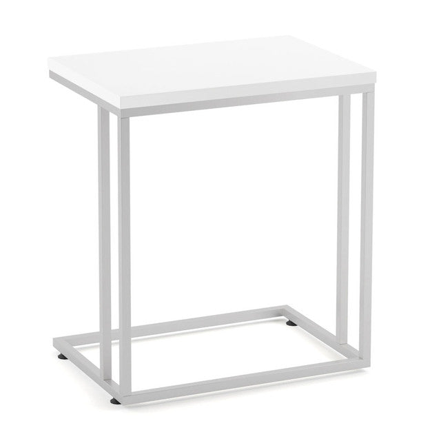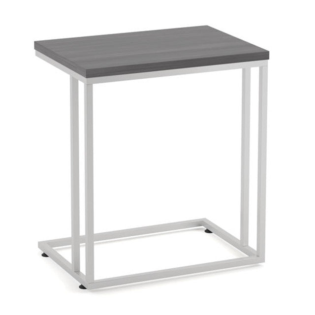 A slim profile with a functional edge. The OS Laminate Side C Table features a sturdy laminate top supported by a silver base, offering a convenient surface for reception areas or workspaces. Available in nine finishes to complement any setting.