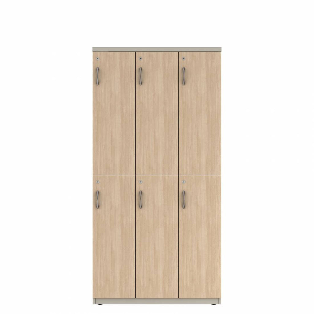 Triple-column design configured for organized access. The Prime™ 72"H Triple Column Locker with two stacked rows measures 36"W x 18"D and features a welded steel frame paired with right-opening laminate doors. Reinforced for daily function, it offers secure and balanced storage through a central locking system.